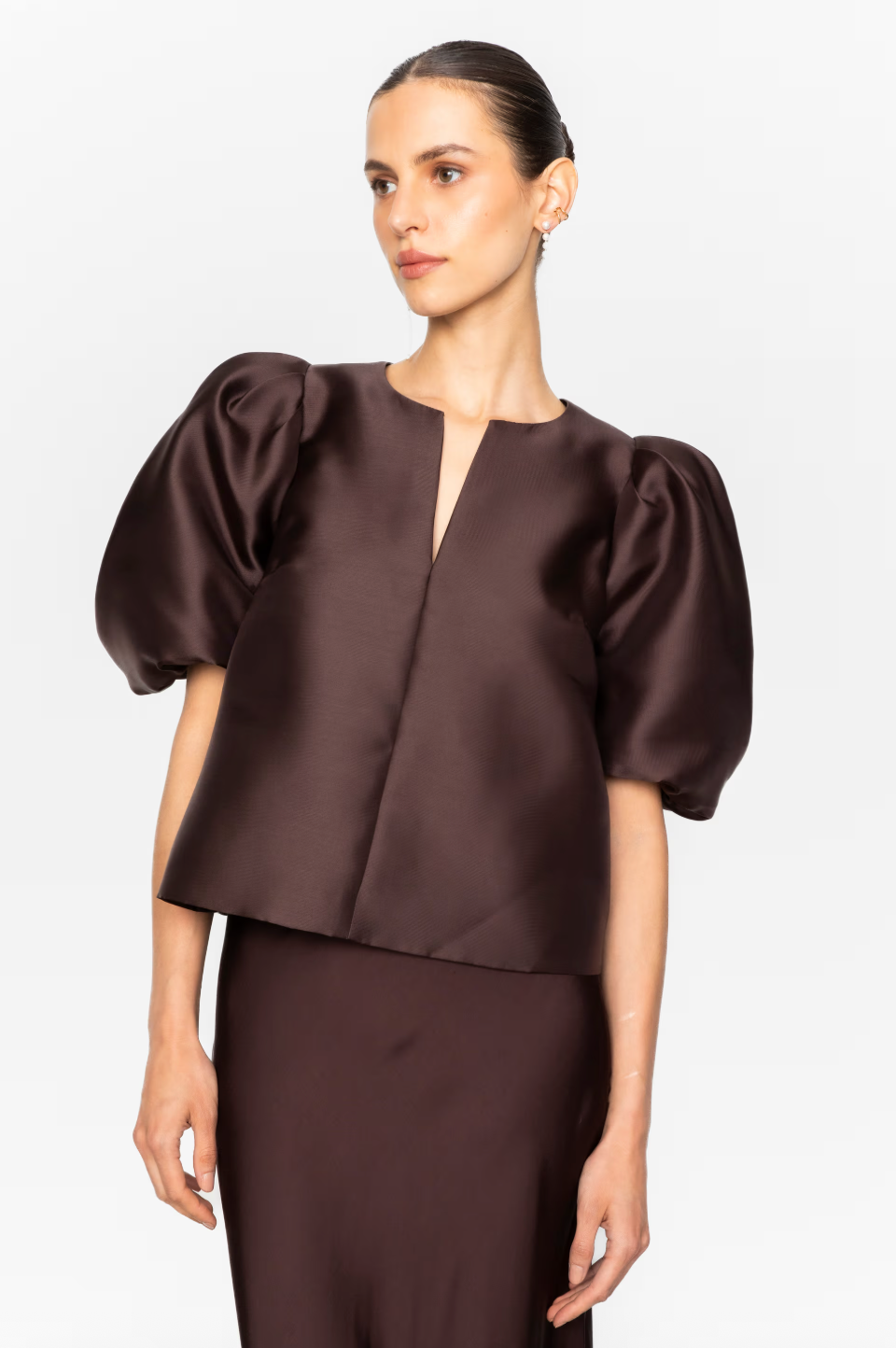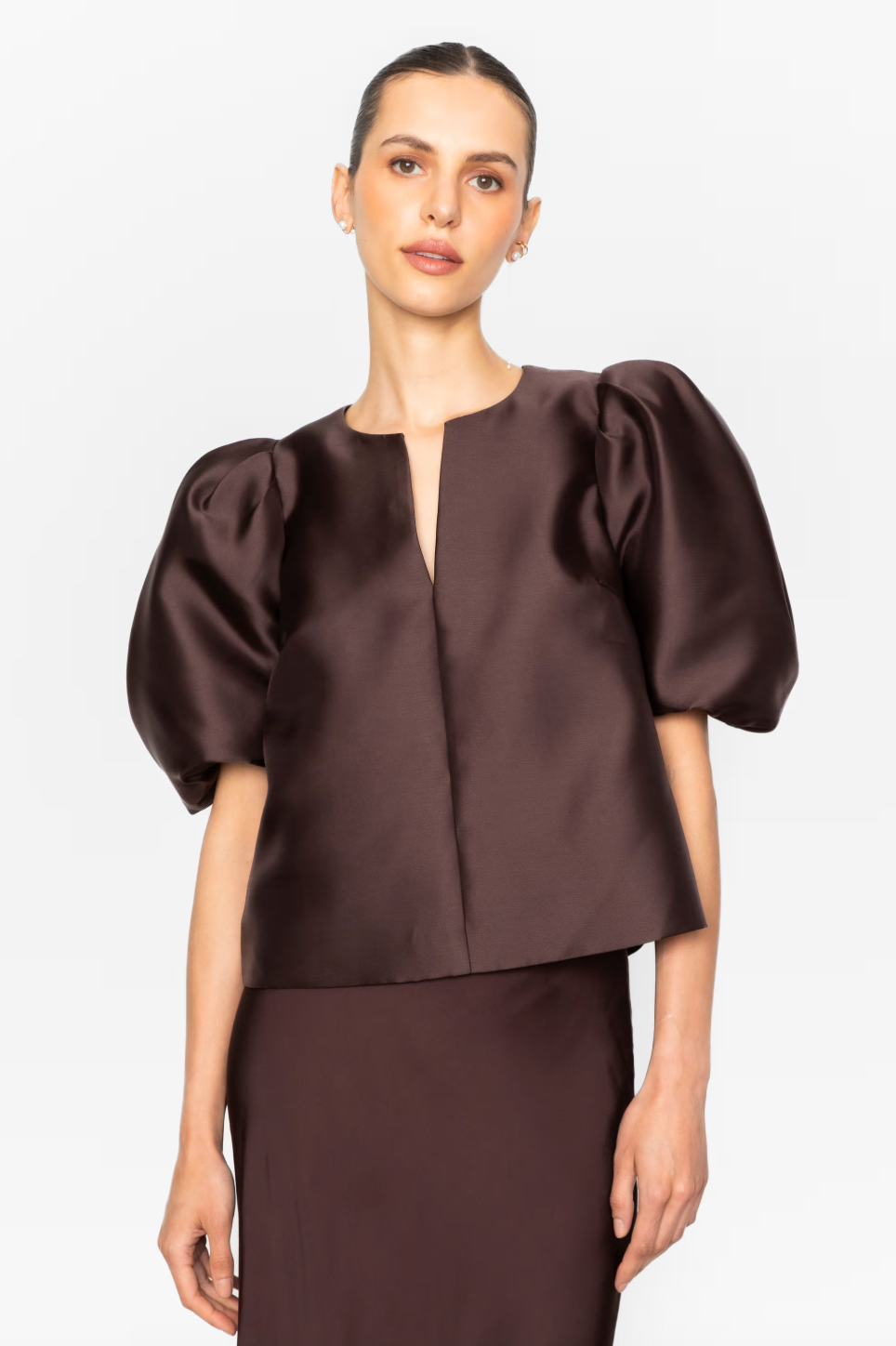 Maeve Top er en løstsittende bluse med en smal V-hals og voluminøse ermer som går rett over albuen. Uanstrengt stilig og komfortabel, perfekt for både avslappet og pent antrekk.