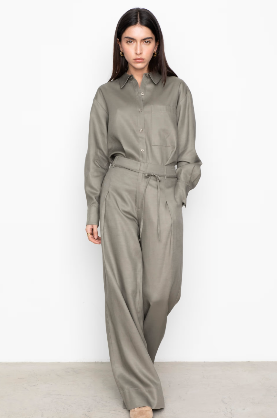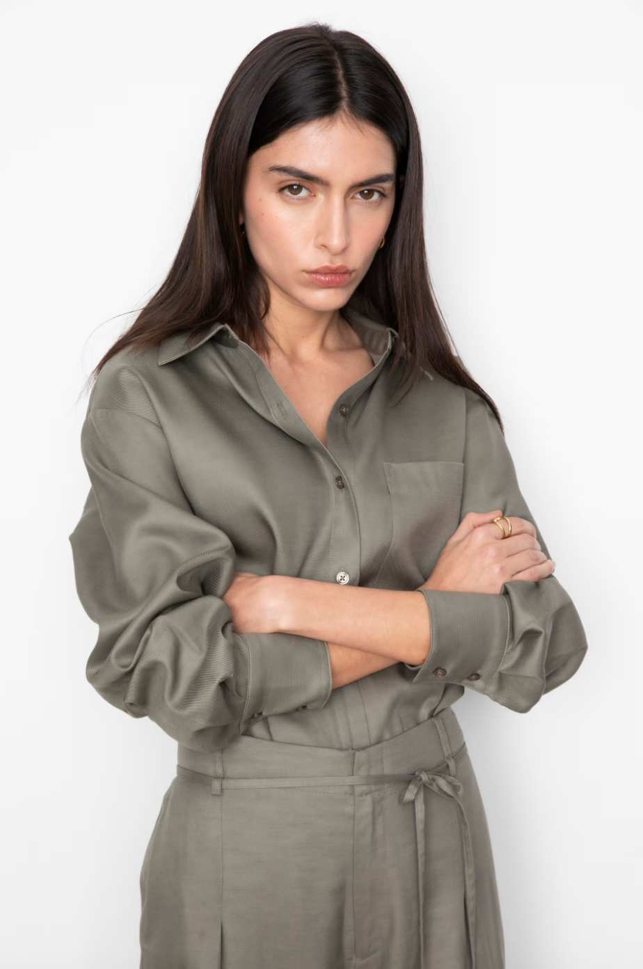 Isola-skjorten er en oversized, flagrende modell laget av en myk Tencel-blanding. Designet med senkede skuldre, leggdetaljer ved ermhullet og mansjetten, og en firkantet brystlomme for et subtilt, funksjonelt utseende. Kombiner den med de matchende Abelone-buksene for et komplett antrekk.