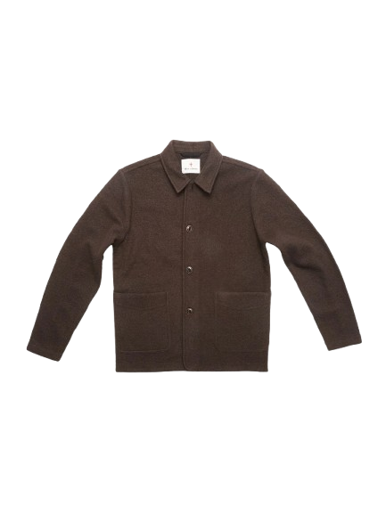 Kojima Wool Jacket er en allsidig overskjorte som kombinerer funksjon og stil, og bygger bro mellom yttertøy og strikkeplagg. Den har en vanlig passform med en klassisk krage, to lappede lommer foran og er ferdig med merkede corozo-knapper – en naturlig detalj som vitner om håndverket i hjertet av Blue de Gênes.