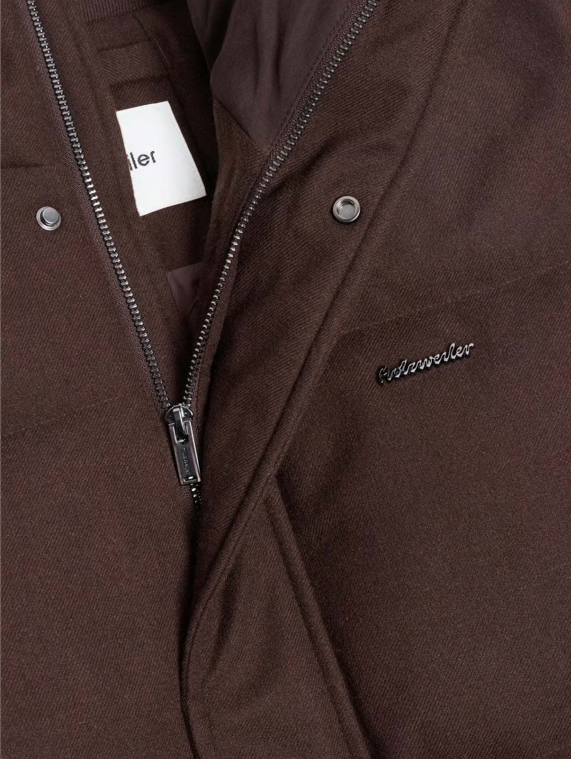 Tech Wool-dunjakken har en sporty, kort silhuett. Laget av en teknisk ullblanding med vannavvisende overflate, er den vattert med RDS-sertifisert dun.