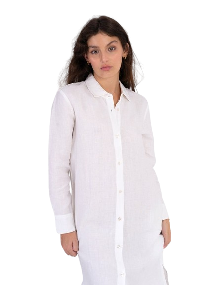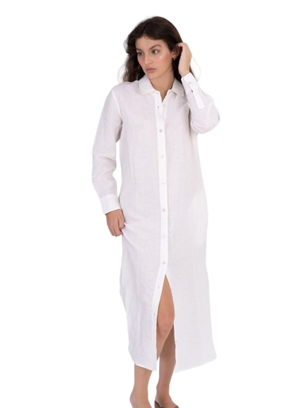 Denne kjolen er i 100% lin med en supermyk og komfortabel følelse som er middels tykk. Den har lange ermer detaljert med knapper hele veien, leveres med et knytebånd. Det er en absolutt sommer klassiker som aldri går av moten!
