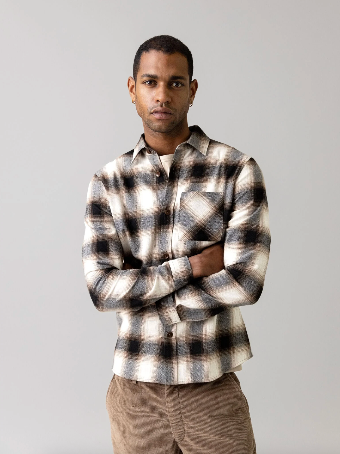 En rutete flanellskjorte med hybrid energi – laget for de som setter pris på en subtil struktur med en grov kant. Klassisk krage, knappelukking og en vanlig passform gjør den til et must for lag-på-lag-antrekk. Dette er arbeidsklær redefinert med moderne allsidighet.