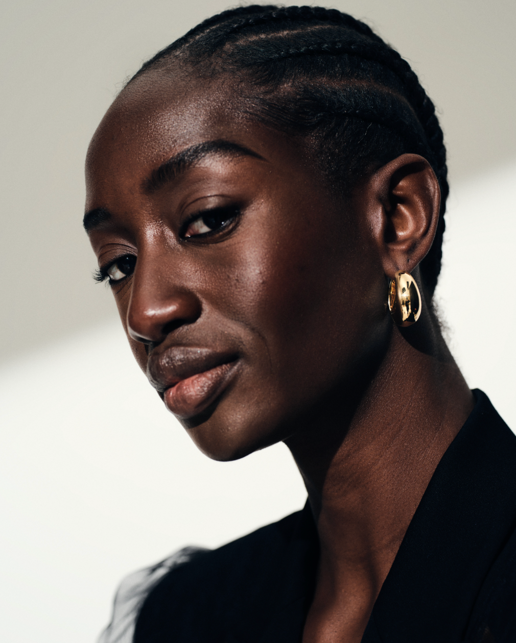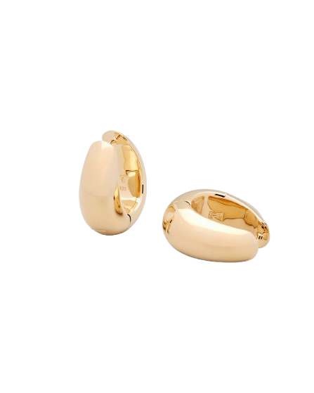 Ice Hoops Large Gold er inspirert av måten isbiter har en tendens til å smelte til en mer buet og skinnende form. Ringene selges som et par, og kan brukes som et blikkfang eller kombineres med andre stiler og størrelser.