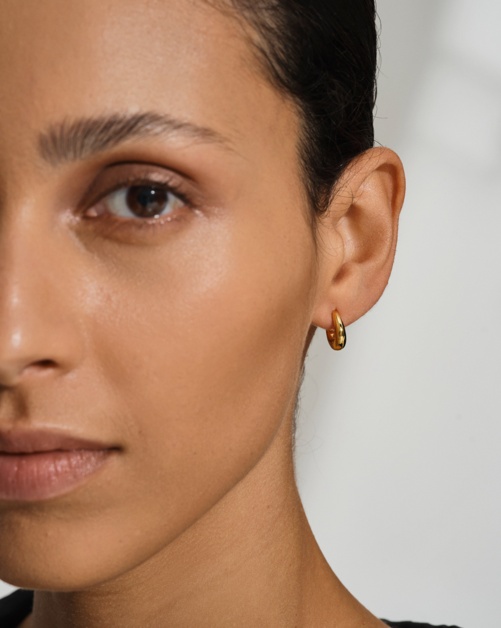 Et delikat par Huggies-smykker, laget av 925 sterlingsølv med polert 18 karat gullbelegg. Alle edle metaller er 100 % resirkulert.