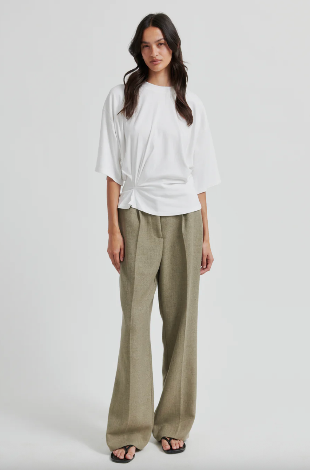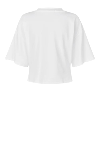 Kortermet t-skjorte fra Second Female. T-skjorten er laget i en myk, elastisk lyocell- og bomullsblanding. Rund hals og senkede skuldre. Rynkede detaljer foran for drapert effekt. Avslappet passform øverst med mer tettsittende midje.