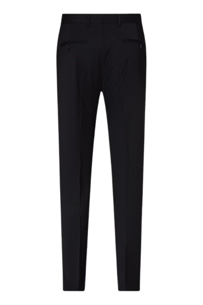 Klassiske dressbukser laget av fleksibel ullstretch. Denne modellen har en rett, men romslig passform, en klassisk midjehøyde og elegant trykk.