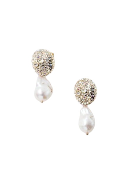 "Aurora Studs Earrings " fra Pearl Octopussy. Lekre statement øredobber fra norske Pearl Octopussy. Øredobben gir et dristig, men tidløst preg til ethvert antrekk. Den øvre delen er besatt med krystaller, som er designet for å reflektere lys fra alle vinkler. Under henger unike barokkperler som gir dybde og intrig, hver av dem naturlig formet for en unik finish.