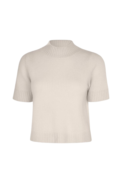 Remie er en tettsittende genser i t-skjortestil i 100 % enkel, strikket kasjmir. Den har høy, utringet hals og ribbekant i halsen, mansjettene og falden, noe som gir en komfortabel hverdagssilhuett.