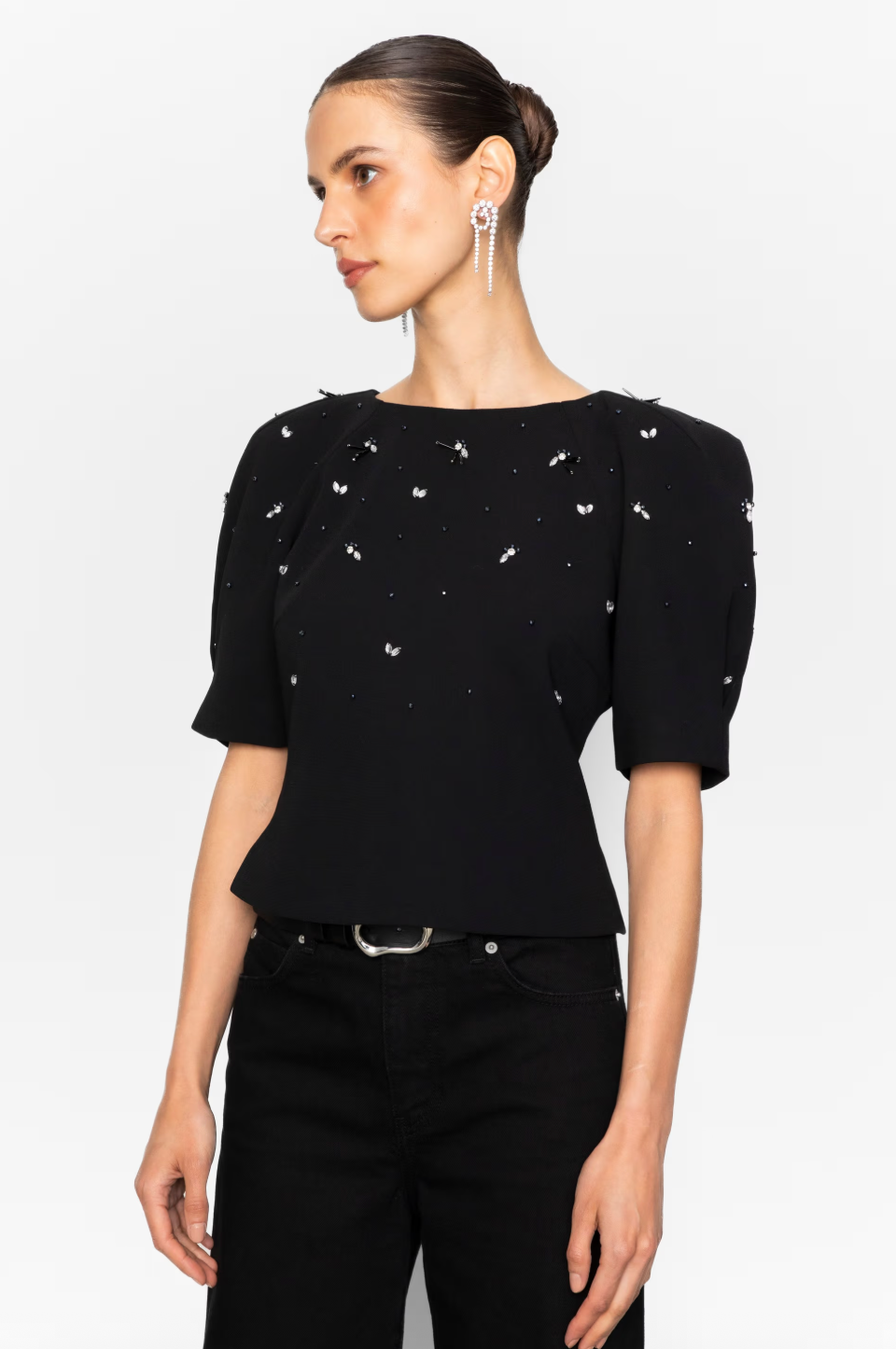 Lowa Top er en kortermet topp med fokusert utsmykning øverst foran. Har raglanermer og diskré skulderputer for ekstra struktur.