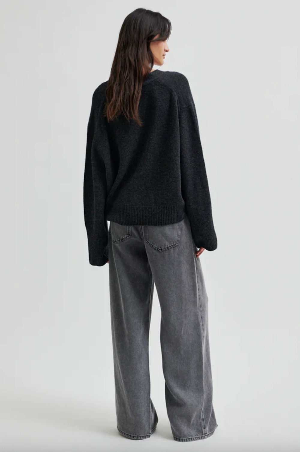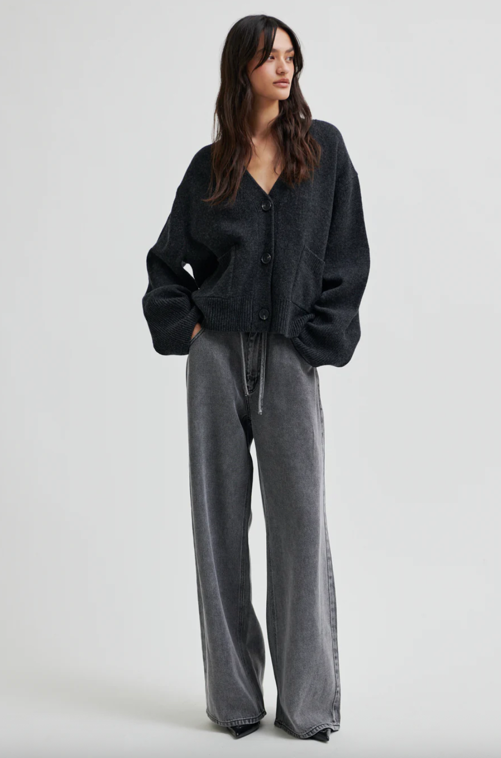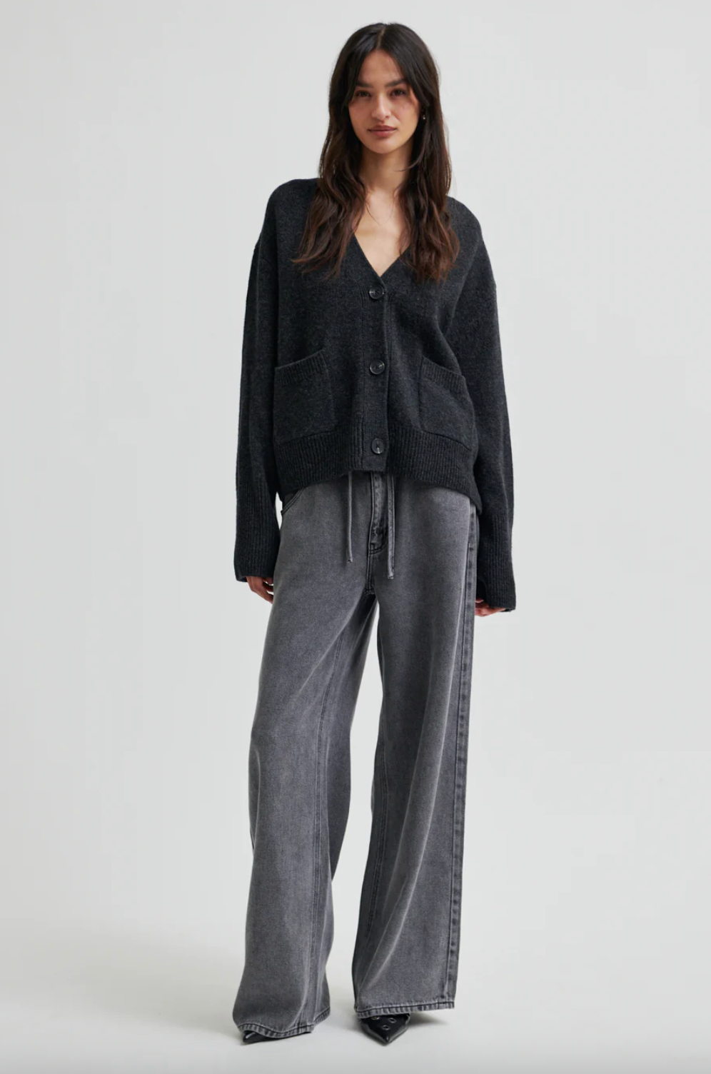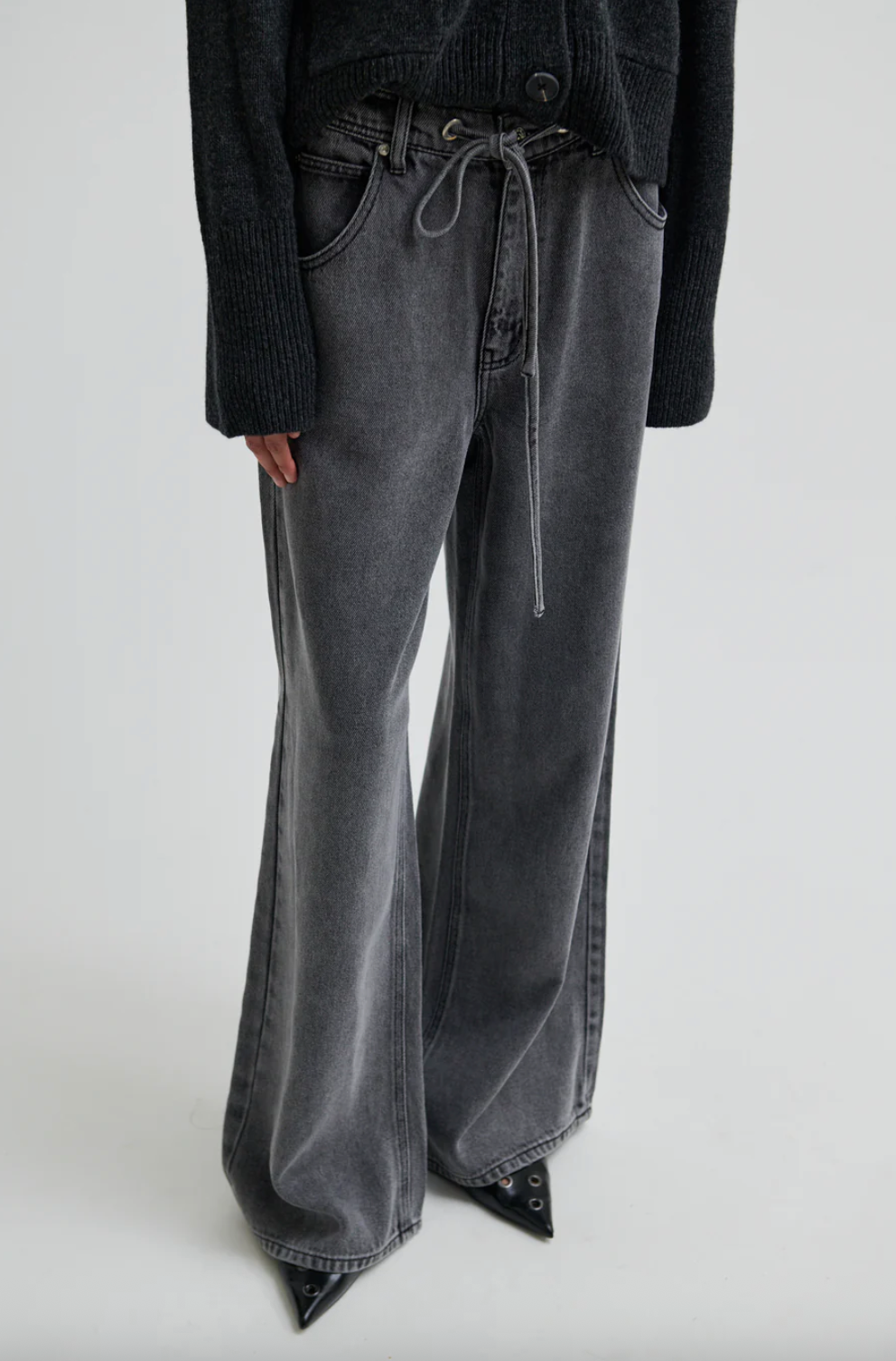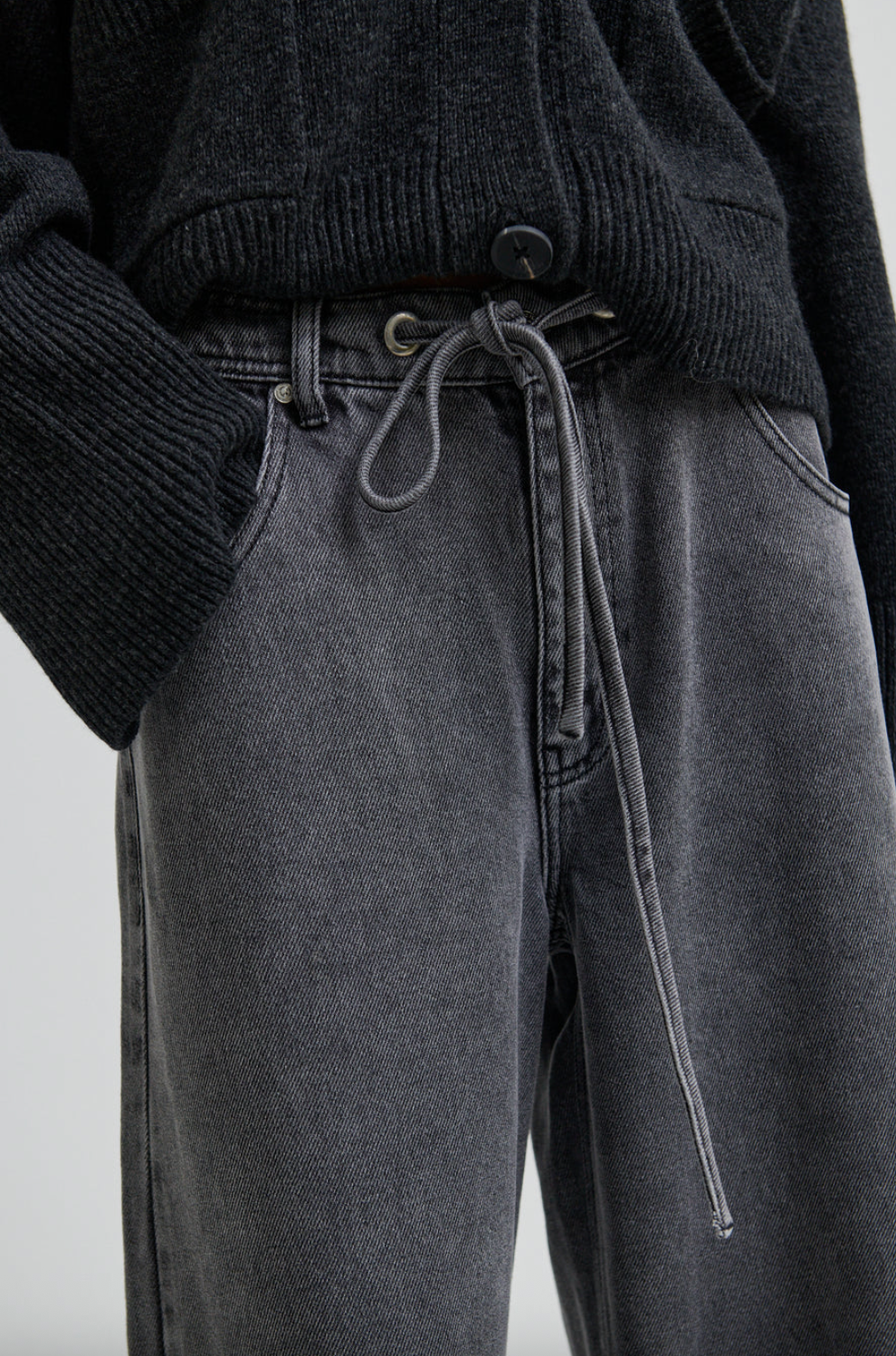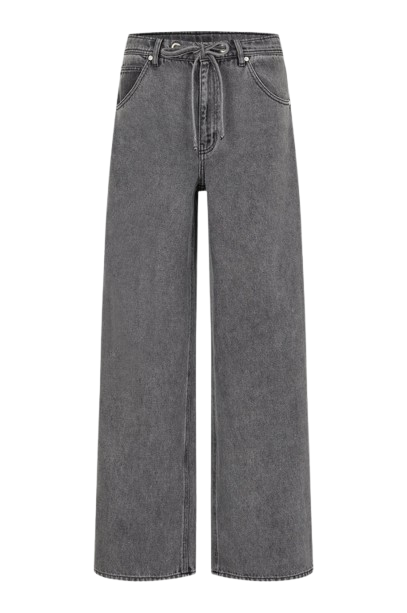 Second Female-jeans med belte. Jeansene er laget i myk, fallende lyocell. Med skjult glidelås og knapp foran og snøring med knyting i midjen. Femlommersmodell. Medium midje med løse, rette ben.